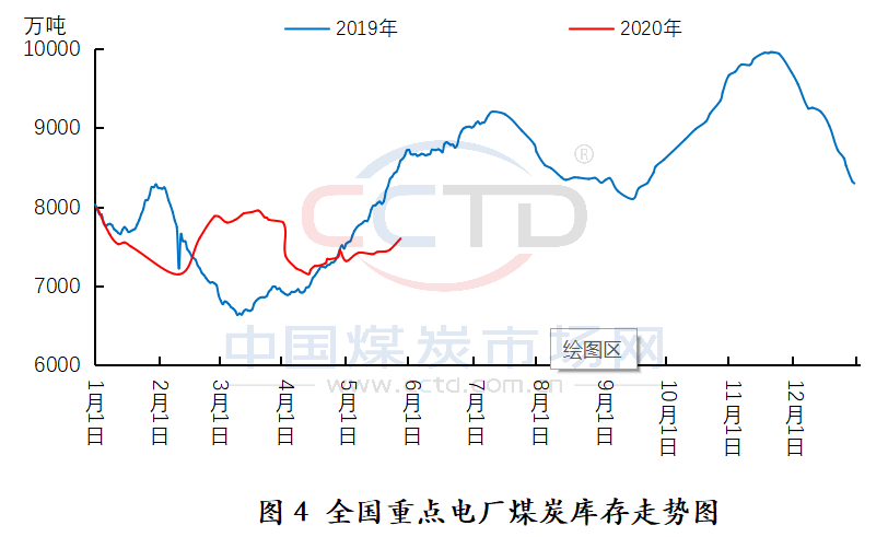 另一方面,虽然梅雨季节时南方雨水天气将增多,水电出力增加将替代部分火电,但进入6月份,国内气温将逐渐升高,居民用电需求增多,电厂日耗不断增长,加之随着疫情得到控制,国家层面稳定经济的举措将推动经济社会秩序逐步恢复,下游工业企业复工复产规模将进一步扩大,整体电煤需求将维持相对高位,支撑市场煤价。