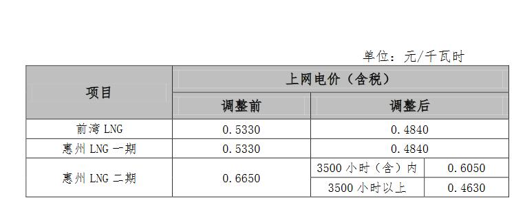 公司控股电厂的以下天然气机组上网电价进行相应调整,调整后的上网电价执行情况如下: