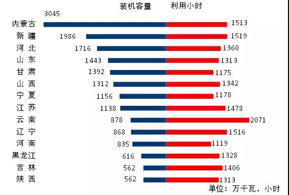 图3 1-8月份风电装机较多省份风电装机容量和设备利用小时