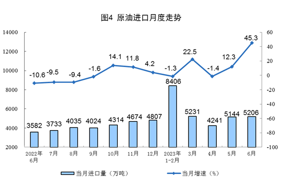 进口数据来源于海关总署,其中2023年6月份数据为快讯数据。
