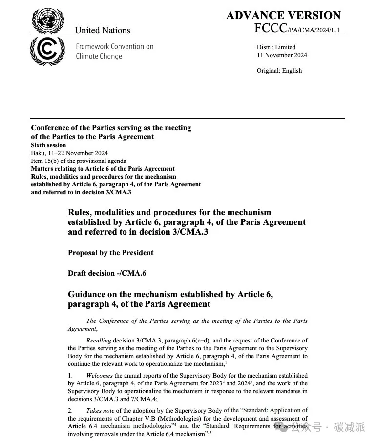 就在刚刚,COP29会议批准了第六条第四款机制即6.4条,为全球各国正式开展碳交易奠定了坚实基础,是全球碳市场的历史性时刻。