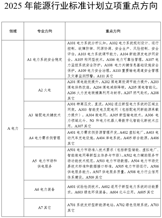 附件:2025年能源行业标准计划立项重点方向