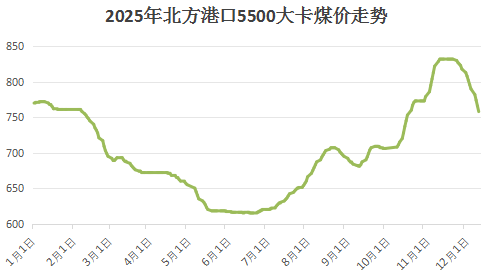 然而,港口煤价却一路下行,12月5日跌破800元/吨,12月11日,煤价已经比年初的770元/吨还要低,此后港口煤价还在继续走低。