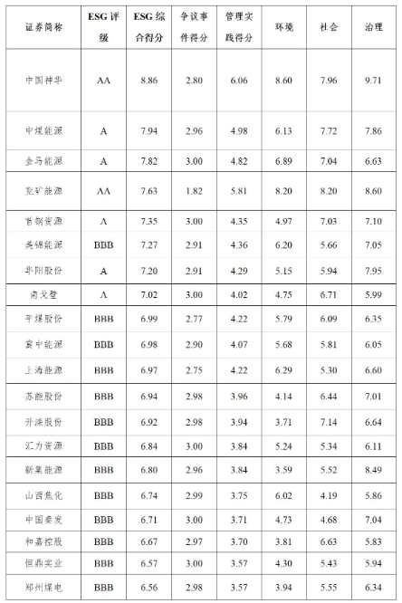 根据最新Wind ESG评级数据,煤炭行业44家上市公司评级结果呈现“头部集中、中部蓄力、尾部待进”的清晰格局。中国神华ESG评级保持AA级,企业管理水平高,ESG风险低,可持续发展能力强;兖矿能源ESG评级实现纵向跃升,践行可持续发展能力再进一步。中煤能源、金马能源、首钢资源、华阳股份、南戈壁等5家企业获得A级;美锦能源、平煤股份、冀中能源等17家煤炭企业获得BBB级,ESG风险处于一般水平;此外,还有20家煤炭企业处于BB级或B级,企业可持续发展能力有待进一步提升。