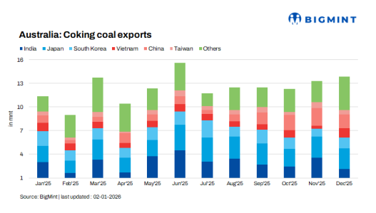 BigMint:2025年澳大利亚动力煤出口同比下降1.2%,炼焦煤出口同比下降5%