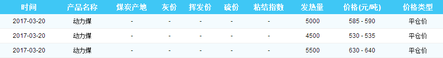 2017年03月20日黄骅港煤炭价格