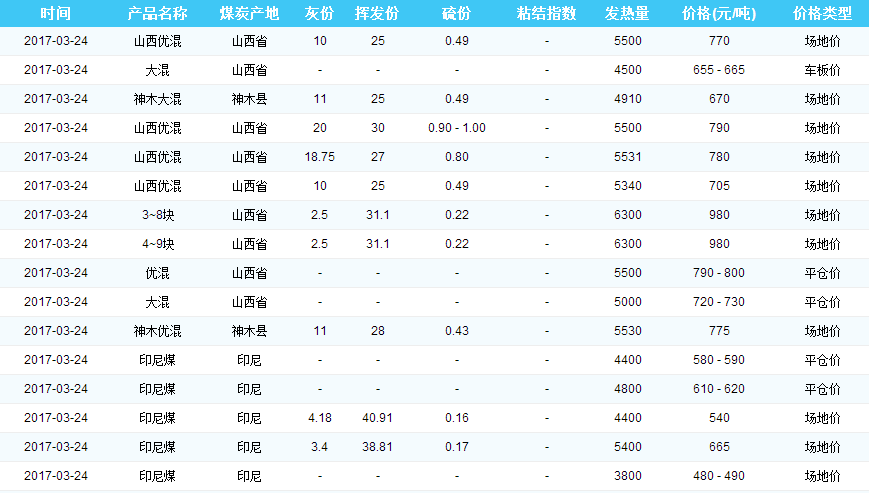 2017年03月24日广州港煤炭价格