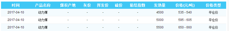 2017年4月10日京唐港煤炭价格