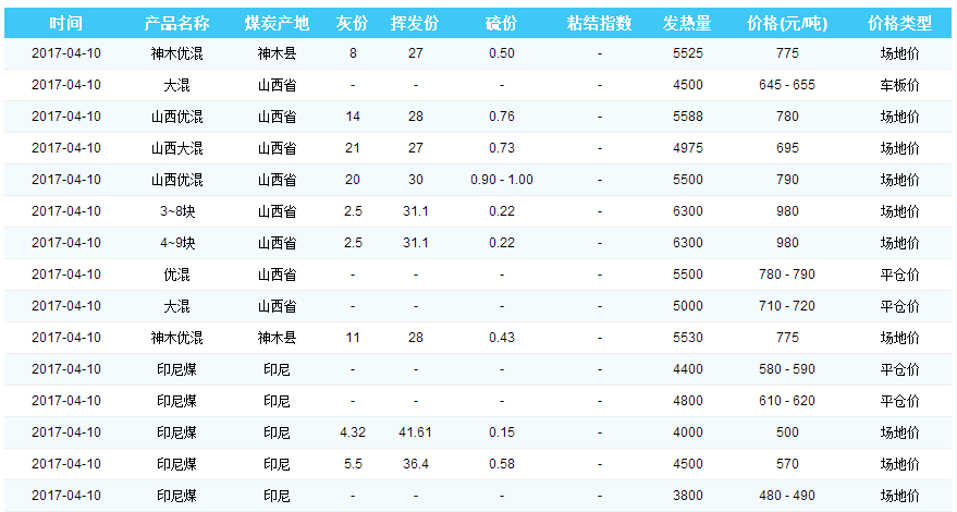 2017年4月10日广州港煤炭价格