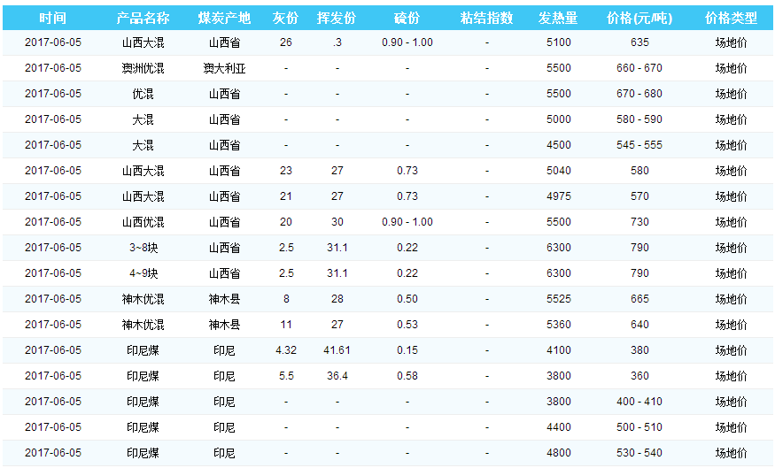 2017年6月5日广州港煤炭价格