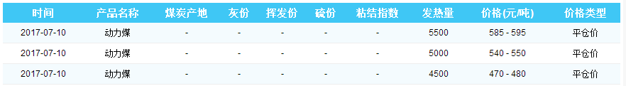 2017年7月10日京唐港煤炭价格