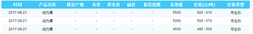 2017年8月21日京唐港煤炭价格
