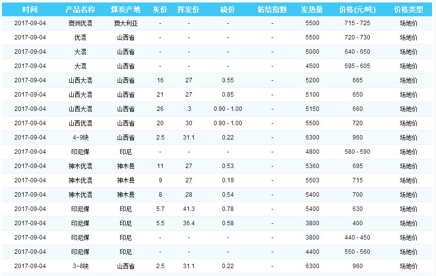 2017年9月4日广州港煤炭价格