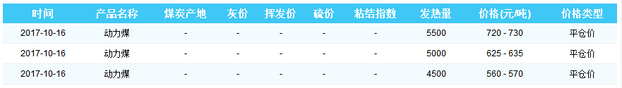2017年10月16日广州港煤炭价格
