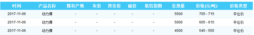 2017年11月6日天津港煤炭价格