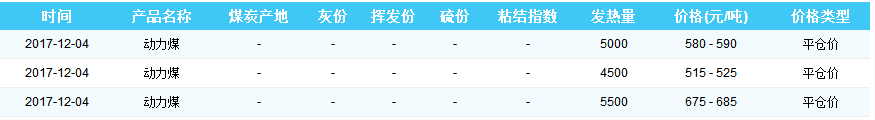 2017年12月4日黄骅港煤炭价格