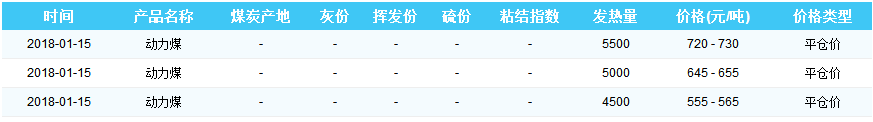 2018年1月15日京唐港煤炭价格