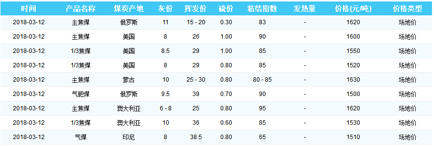 2018年3月12日天津港煤炭价格