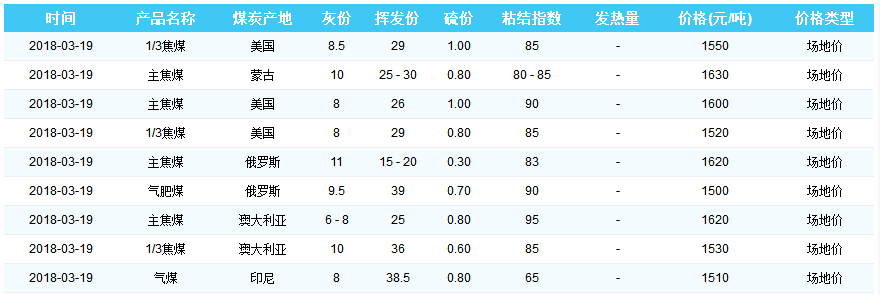 2018年3月19日天津港煤炭价格