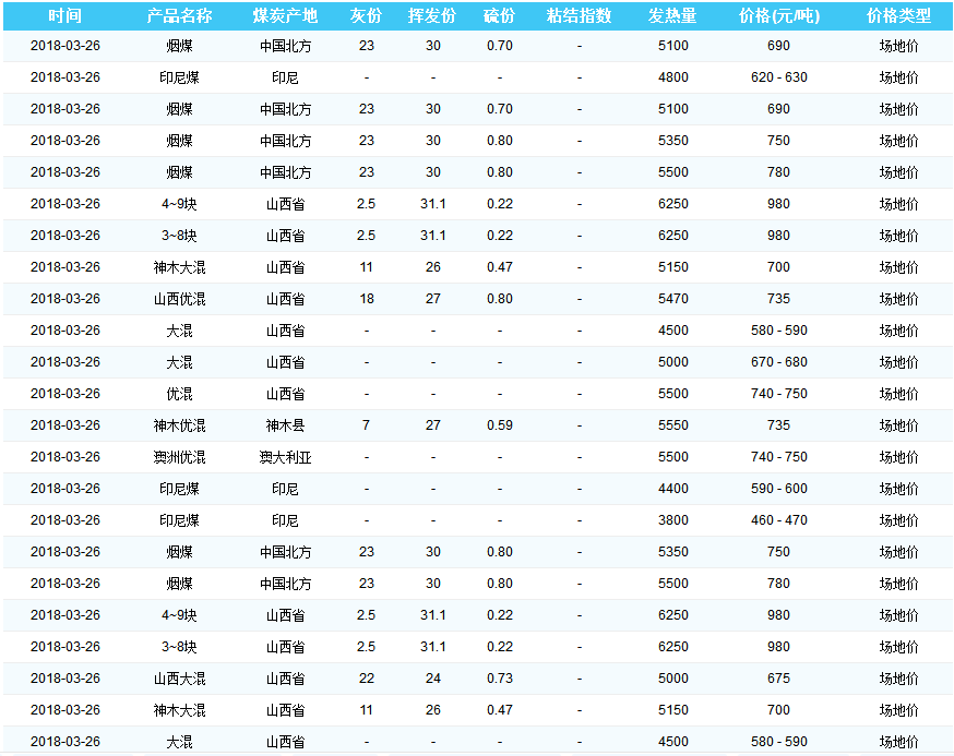 2018年3月26日天津港煤炭价格