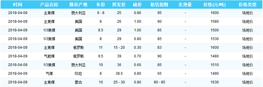 2018年4月9日天津港煤炭价格