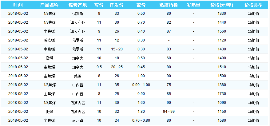 2018年5月2日天津港煤炭价格