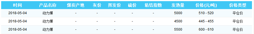 2018年5月4日秦皇岛港煤炭价格