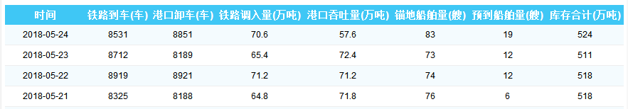 2018年5月25日秦皇岛港煤炭价格