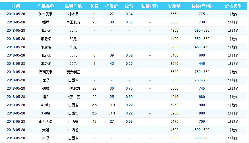 2018年5月28日广州港煤炭价格