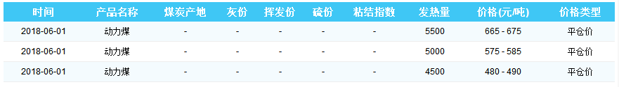 2018年6月1日曹妃甸港煤炭价格