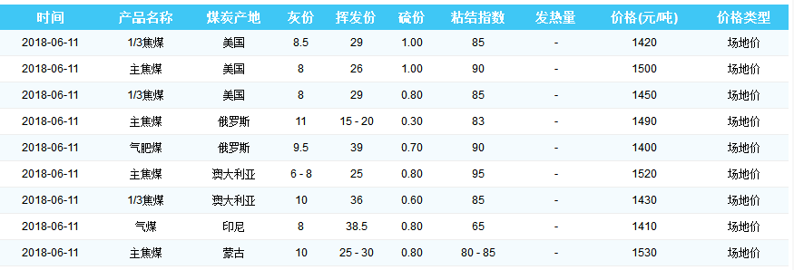 2018年6月11日天津港煤炭价格