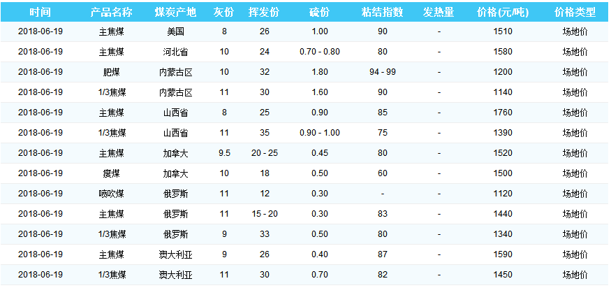 2018年6月19日天津港煤炭价格