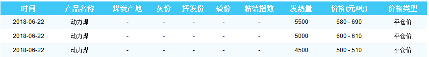 2018年6月22日秦皇岛港煤炭价格