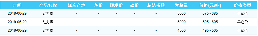 2018年6月29日曹妃甸港煤炭价格