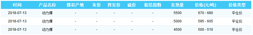 2018年7月13日曹妃甸港煤炭价格