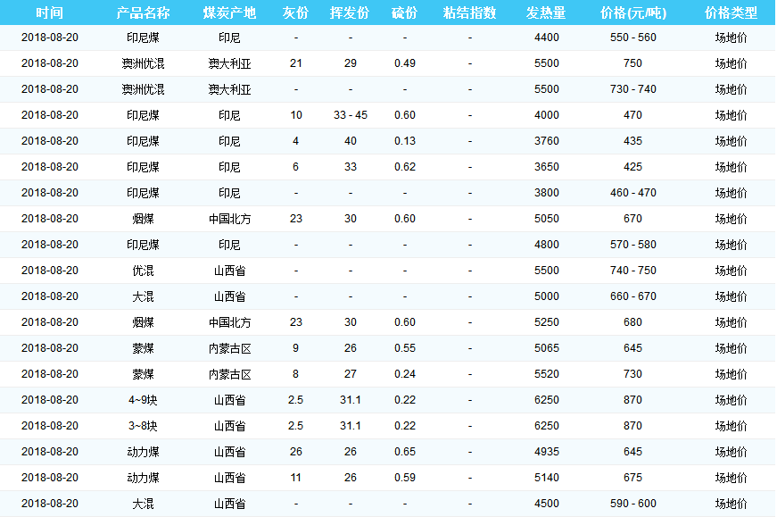 2018年8月20日广州港煤炭价格
