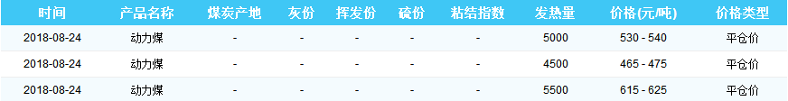 2018年8月24日秦皇岛港煤炭价格
