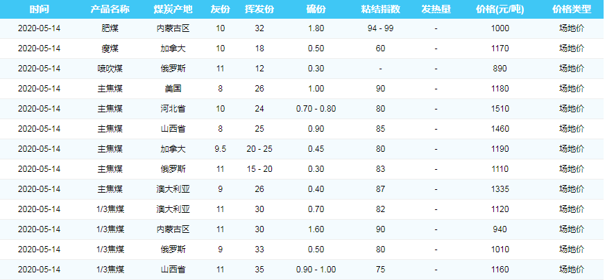 2020年5月14日广州港煤炭价格