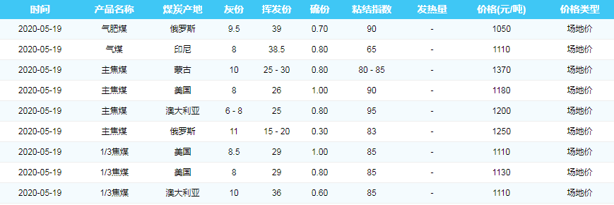 2020年5月19日天津港煤炭价格