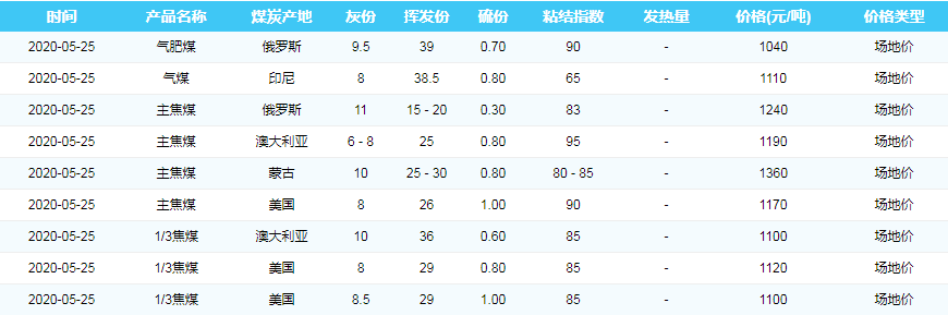 2020年5月25日广州港煤炭价格