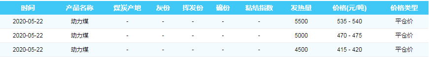 2020年5月22日黄骅港煤炭价格