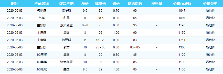 2020年6月3日天津港煤炭价格