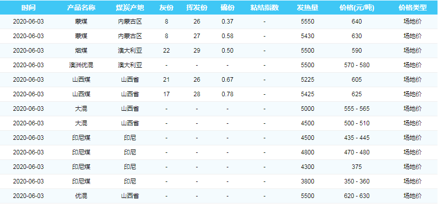 2020年6月3日广州港煤炭价格
