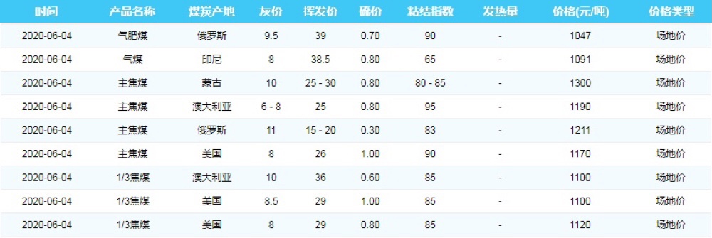 2020年6月3日广州港煤炭价格