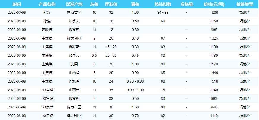 2020年6月9日广州港煤炭价格