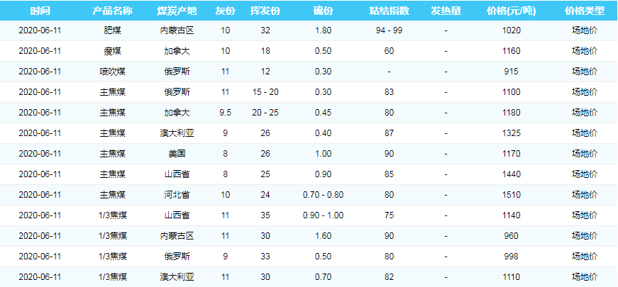 2020年6月11日广州港煤炭价格