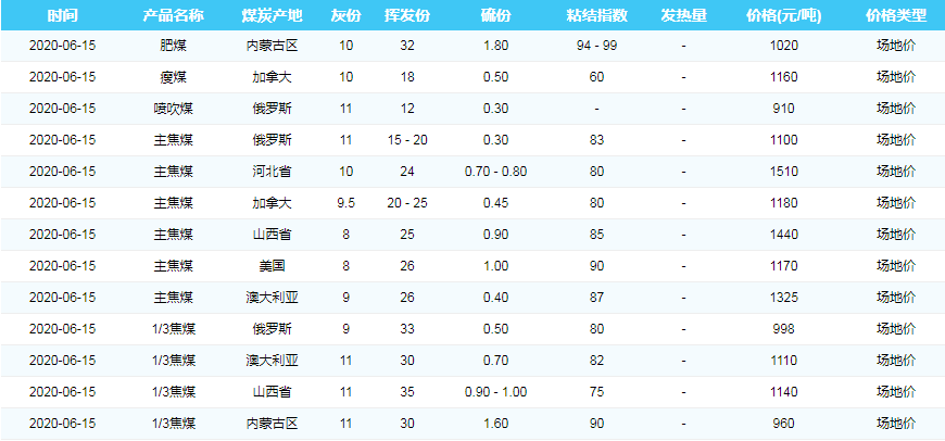 2020年6月15日京唐港煤炭价格