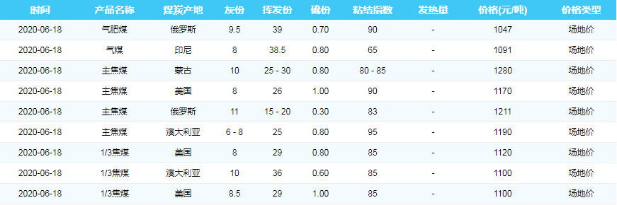 2020年6月18日天津港煤炭价格