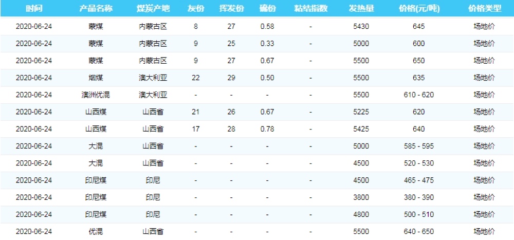 2020年6月24日广州港煤炭价格