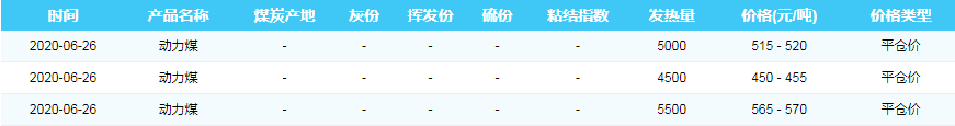 2020年6月26日黄骅港煤炭价格